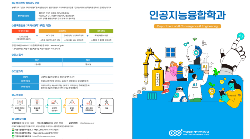 Read more국내 최고의 첨단시설과 교수진을 갖춘 한국열린사이버대학교 인공지능융합학과에서 2024 신편입생을 모집합니다. 관심 있는 산업체 재직자 분들의 많은 지원 부탁드립니다. ●모집기간 :