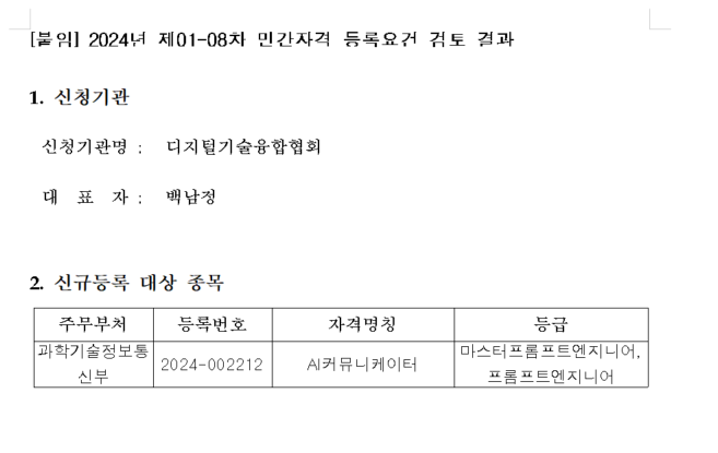 Read moreAICP 자격증 증정식 및 AI 두런두런 행사 성황리에 개최 지난 8월 3일, 디지털기술융합협회는 ‘AICP(AI 커뮤니케이션 전문가) 자격증 증정식’과 ‘AI 두런두런’